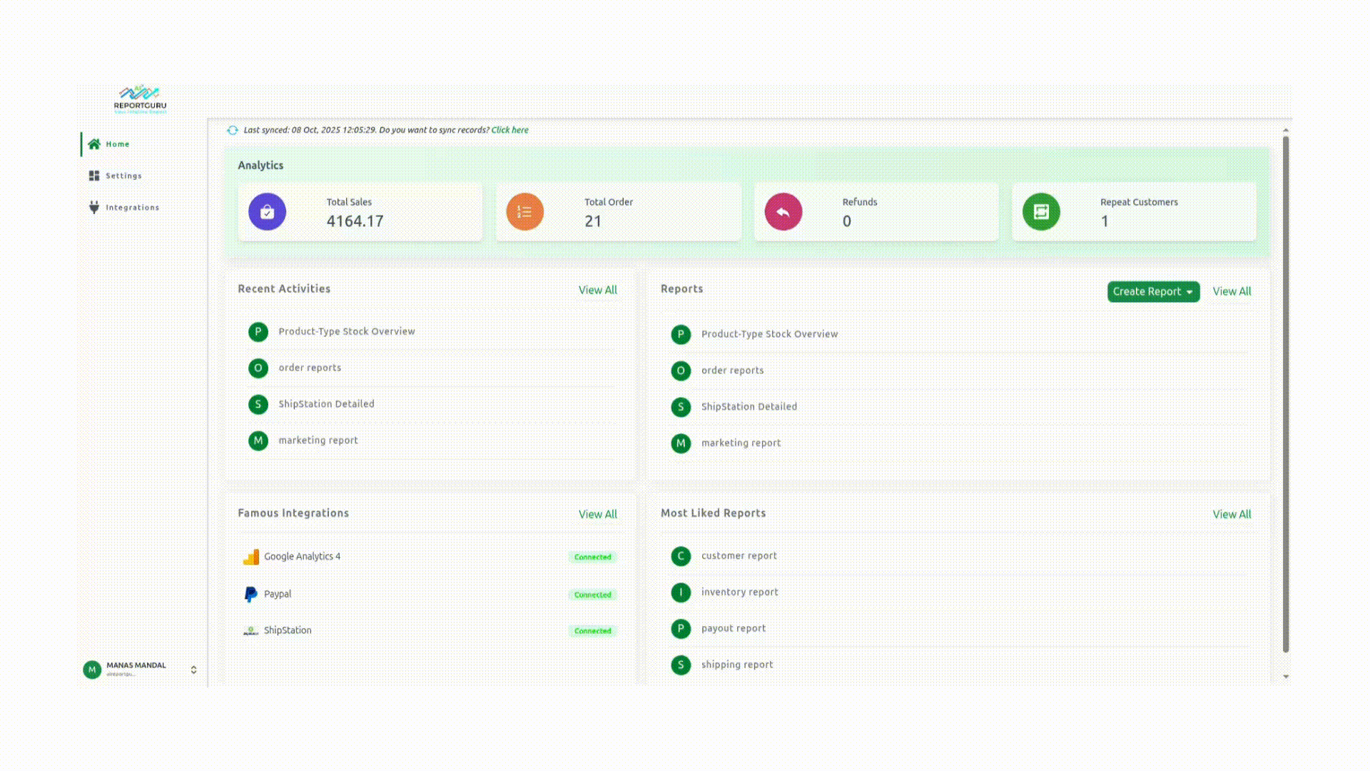 The Reports section in ReportGuru allows you to easily view, manage, and organize all your generated reports in one place. From quick summaries to detailed analytics, this feature helps users access essential business data efficiently.