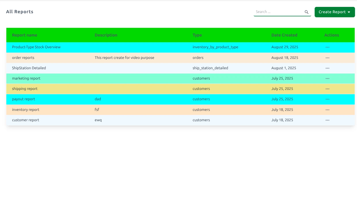 orders,customers,inventory_by_product_type, etc. - Date Created β The date when the report was generated, helping users track updates or new additions.