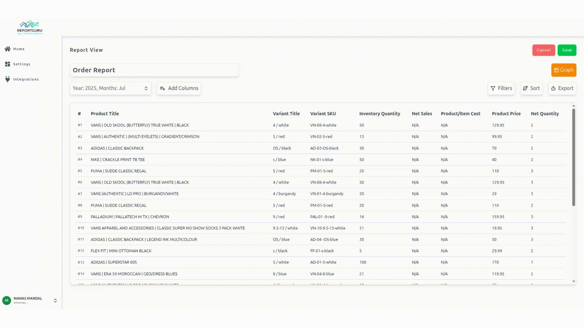 Every business is unique, with its own reporting needs. ReportGuru.ai lets you create Custom Reports tailored to your requirements.