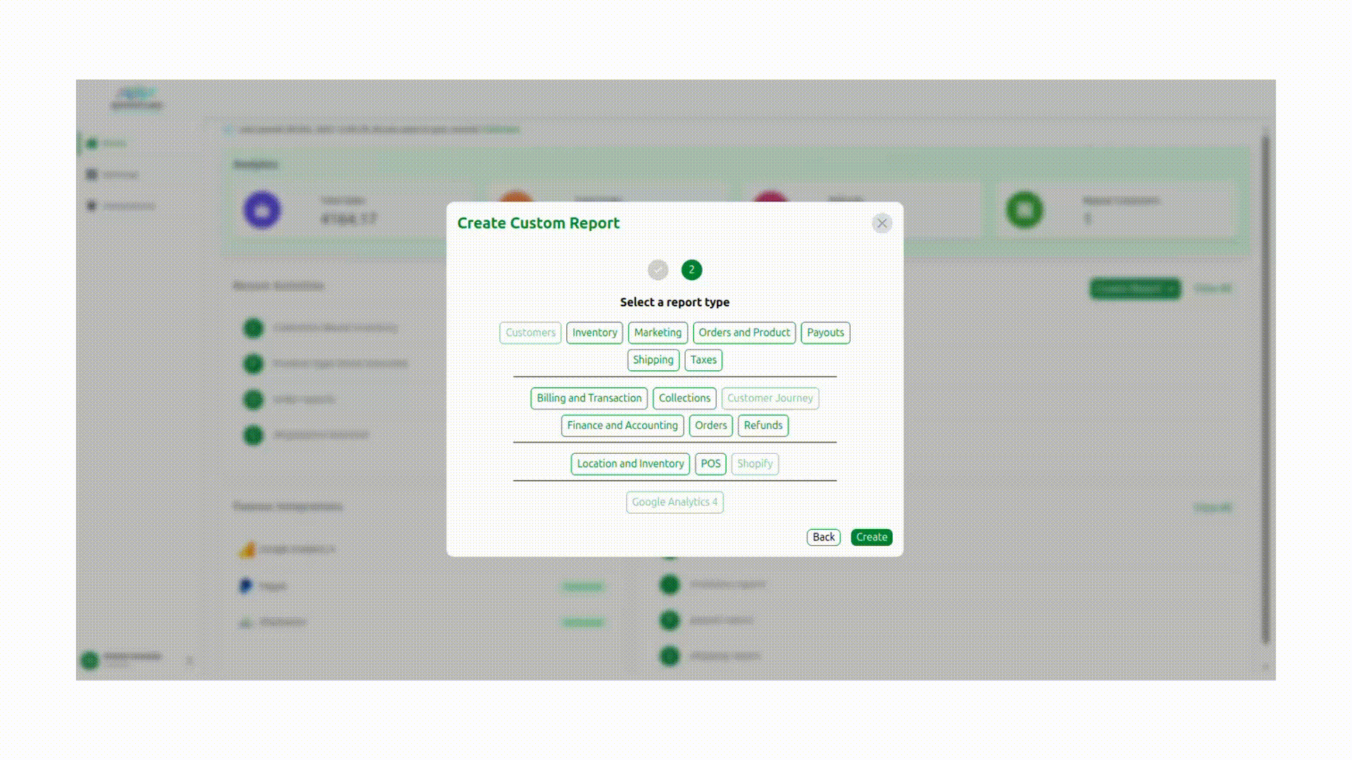 Choose a report category : Select your Report Category from the available options and click Create to proceed.