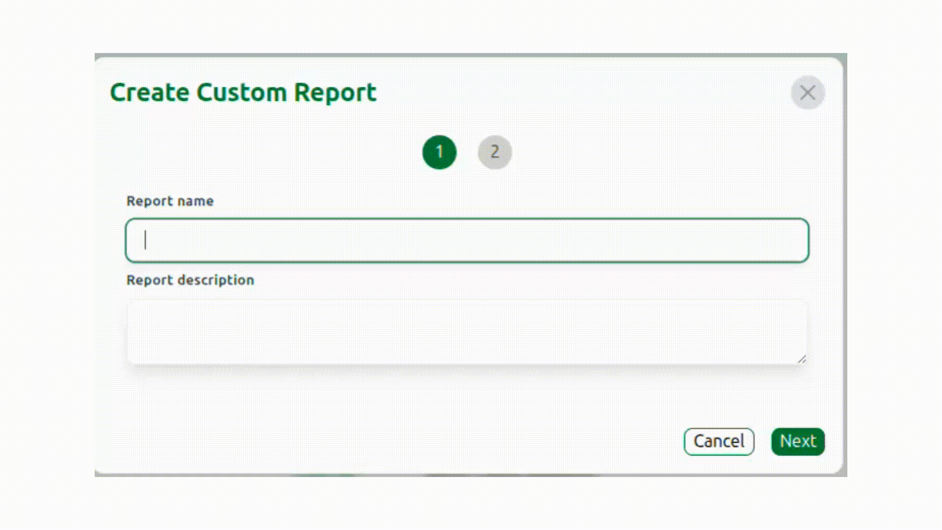 Name your report : Give your report a clear Name. Add a Description if needed, then click Next.