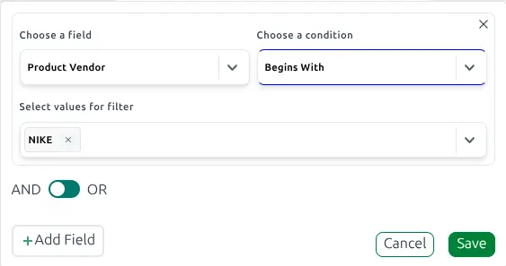 💡 Use the Begins With filter when you need to focus on items that share the same prefix — such as brand names, product categories, or SKU patterns.