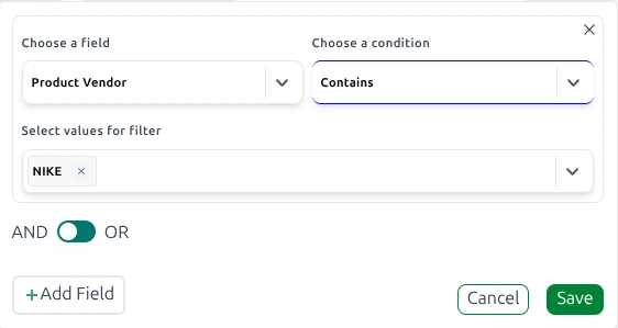 💡 Tip: You can add multiple filter values with the Contains and Not Contains conditions to refine your reports even further.