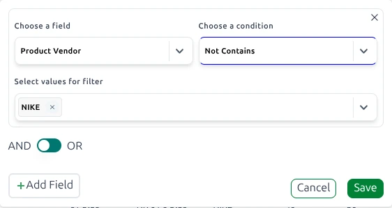 The Not Contains filter helps you instantly narrow your data by excluding specific keywords — perfect for focusing on other brands, collections, or product types without manual sorting.
