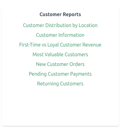 - Customer Insights β Understand buyer behavior, repeat purchase rates, and lifetime value.